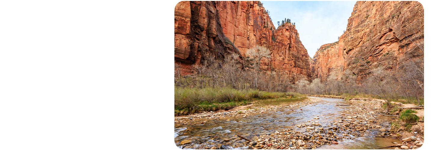 Pavimentado, de fácil acceso, a solo 9 minutos de la estación de carga más cercana y con un recorrido total de alrededor de 90 minutos ida y vuelta, el Narrows Riverside Walk es un sendero perfecto para familias. Los visitantes también pueden apreciar cómo el río ha moldeado el paisaje a través de la geología visible en las paredes del cañón a ambos lados. Si las condiciones lo permiten (no te preocupes, hay señalización en caso de alerta por inundaciones repentinas), también ofrece una ribera agradable donde tú y los más pequeños pueden refrescarse.