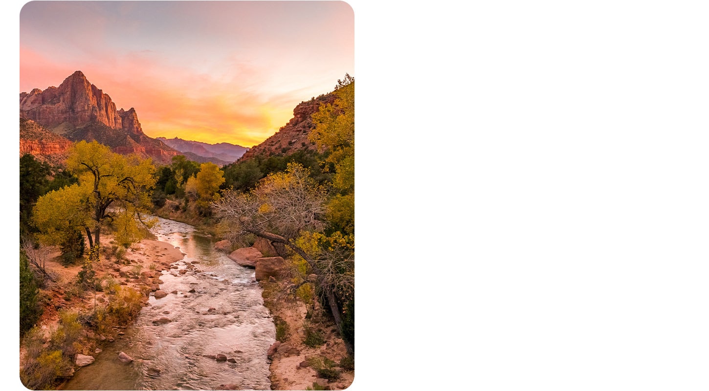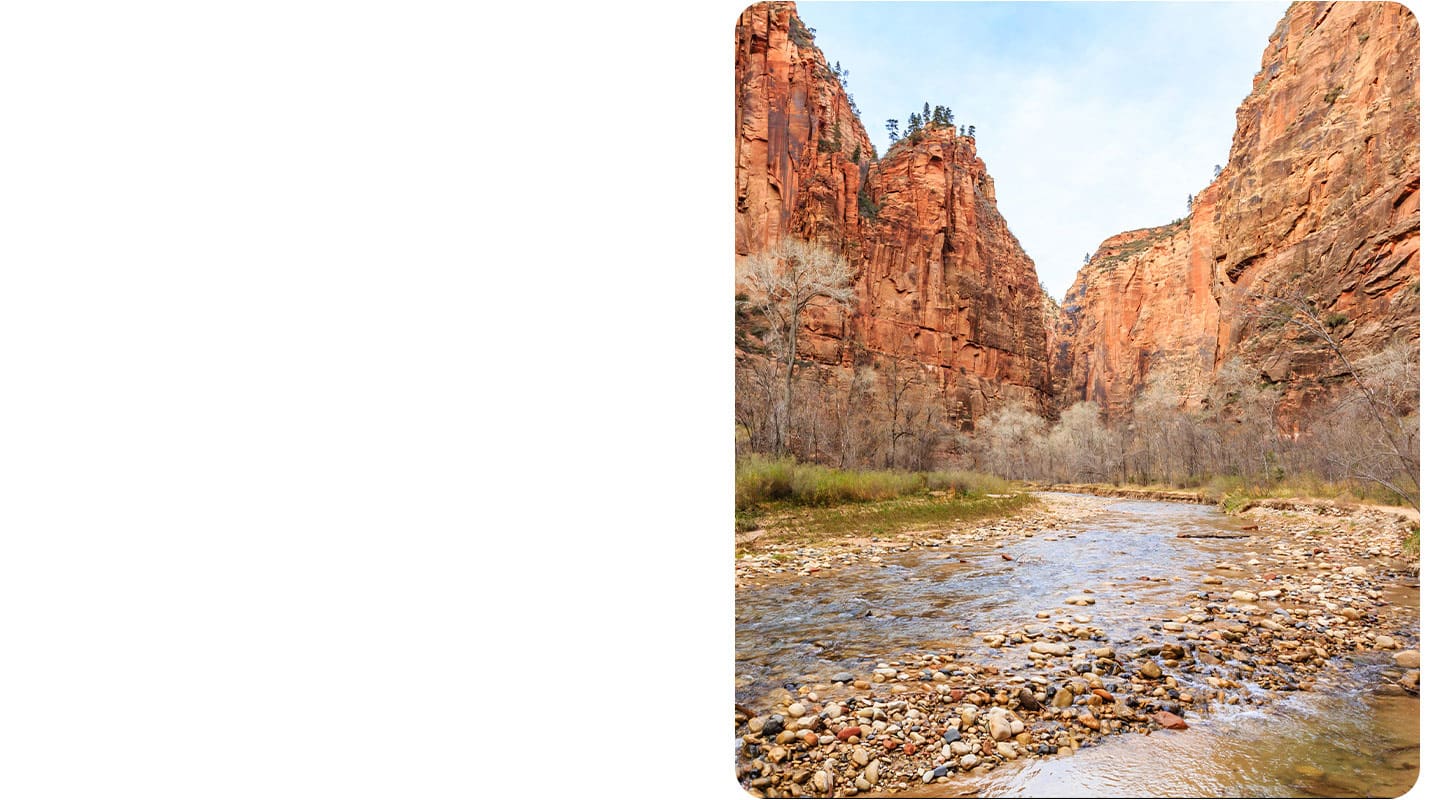 Pavimentado, de fácil acceso, a solo 9 minutos de la estación de carga más cercana y con un recorrido total de alrededor de 90 minutos ida y vuelta, el Narrows Riverside Walk es un sendero perfecto para familias. Los visitantes también pueden apreciar cómo el río ha moldeado el paisaje a través de la geología visible en las paredes del cañón a ambos lados. Si las condiciones lo permiten (no te preocupes, hay señalización en caso de alerta por inundaciones repentinas), también ofrece una ribera agradable donde tú y los más pequeños pueden refrescarse.,